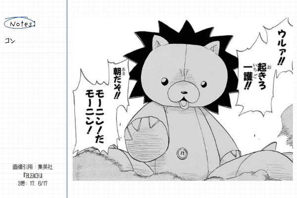 一護が死神の姿になったとき、一護の代わりに生活しますが、自己主張が激しくスケベな言動も多いです。