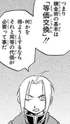等価交換とは「何かを得るためには、同等の何かを失わなければいけない」ということ。