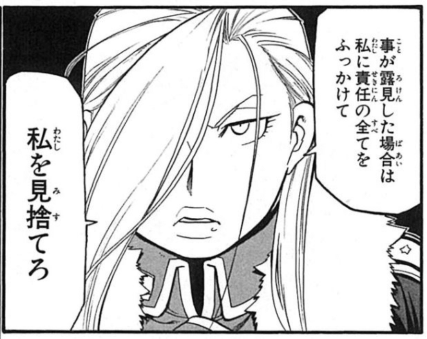 ロイ・マスタングを支える右腕であり、戦場では冷静に銃を握る強さを発揮。信念を胸に戦い続ける姿は多くの読者の心を掴みます。