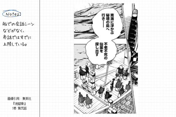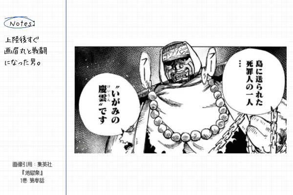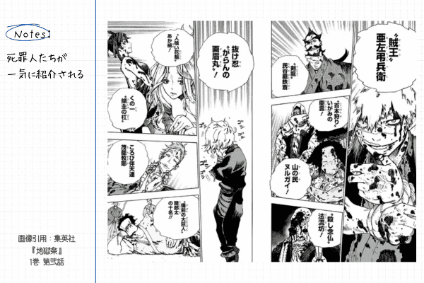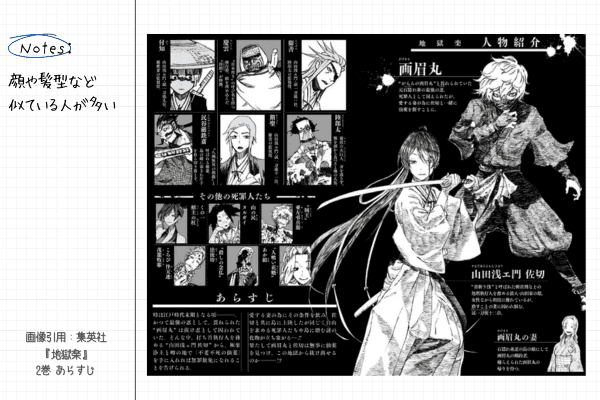 『地獄楽』は序盤でキャラを把握できないと楽しみにくい作品です。