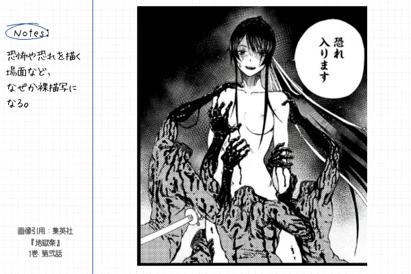 『地獄楽』がつまらないと言われる理由の一つに、グロとエロの描写の強さがあります。