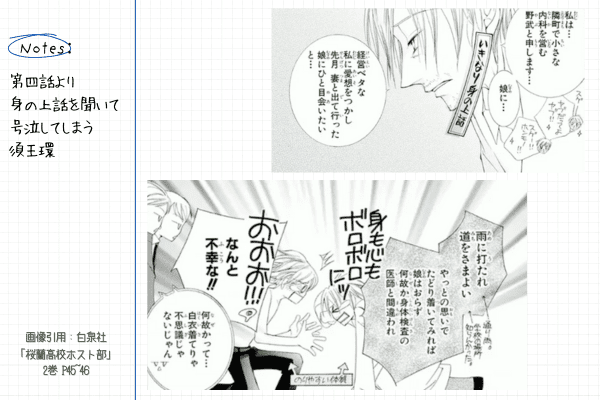 だからこそ、ホスト部のメンバーたちの心の距離がどんどん近づいていきます。ハルヒの共感力が、ホスト部の物語を深くしているといってもいいほど。
