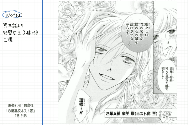 ホスト部での環は、ホスト部に通う女子生徒にとって完璧な王子様。歯が浮くような甘いセリフだって環の完璧な容姿だからハマります。