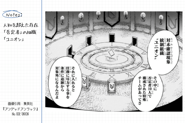 それをきっかけに二人は、人知を超えた存在「否定者」と、それを管理・利用しようとする組織「ユニオン」の存在を知ることになる。