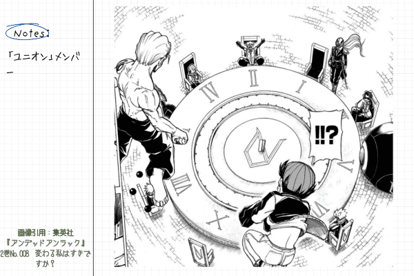 『アンデッドアンラック』が分かりにくいと言われるもう一つの理由は、組織の目的とメンバーそれぞれの役割を理解できないと、物語全体が把握しづらくなる点です。