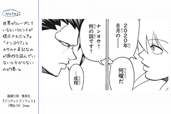 『アンデッドアンラック』が難しいと感じられる理由の一つに、物語が「ループ」する構造があります。