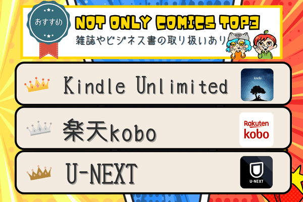 | 目的 | 漫画だけではなく実用書も読みたい、読み放題で読みたい、漫画よりアニメ派だけど漫画も好き |
