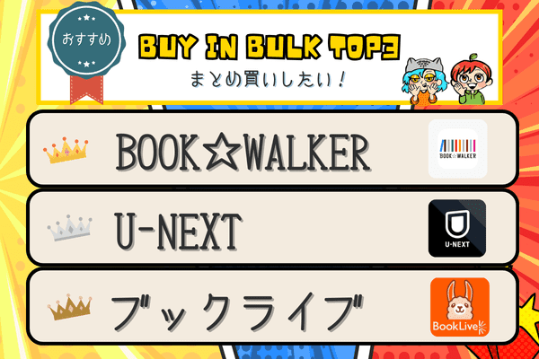 好きな作品は紙の漫画も購入したいという人におすすめの電子書籍サービスは下記の通りです。